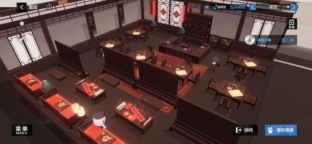 大体基本和上次说的一样,整都是用茶馆主题的家具(脸黑的我用了3万多的家具币才摆好,委屈极了(ಥ_ಥ))