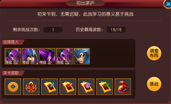 兵临城下是通过击杀士兵的数量计算收益的玩法。在每个难度中,击杀所有士兵和武将才算当前难度通关,并开启下一难度,并获得额外一次挑战次数,难度越高,击杀数的奖励系数越高,获得的奖励越多。每天有1次挑战机会和1次扫次数,并在凌晨5:.00刷新重置次数