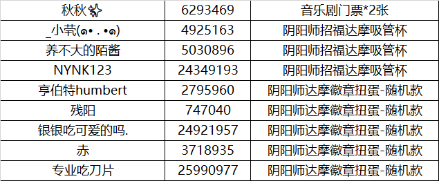 二等奖(5名):阴阳师达摩徽章扭蛋-随机款