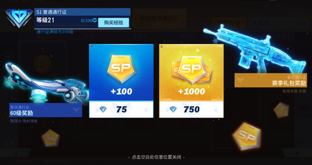 原价150钻的100点通行证经验仅售75钻石