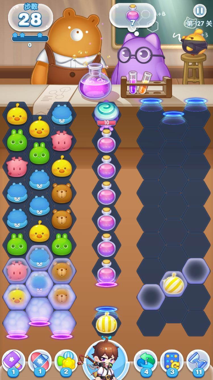 再比如235关,想要让飞艇尽快到达目的地,一定要把蜗牛消除掉。这个时候就需要激光大炮的帮助了,利用孵化器源源不断的孵化黄色棋子,黄色棋子自动消除给大炮充能,大炮攻击蜗牛最终将其消灭。