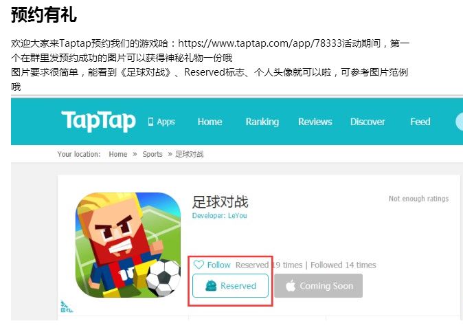 预约有礼活动开始啦。快来我们的《足球队战》玩家群(QQ群号:436895228)围观参加吧!