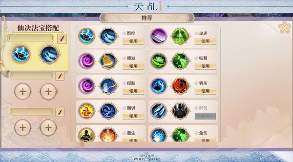 该系统由法术、仙决、天赋、法宝、心法五大部分组成。玩家可将法术、仙决、法宝三类技能进行自由搭配,突破传统游戏技能的设定格局,真正意义上提高手游中战斗的自由度。