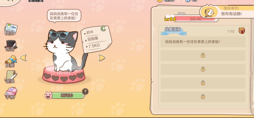 猫咪们的语录和奖励,语句后面括号里的数字是心情标注,代表是楼主在当时心情状态收集到该语录的意思