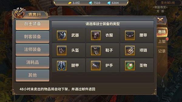 寄售行上的分类非常清晰,比如你是战士,想找自己用的武器,那你就在战士装备-武器里找就可以了。