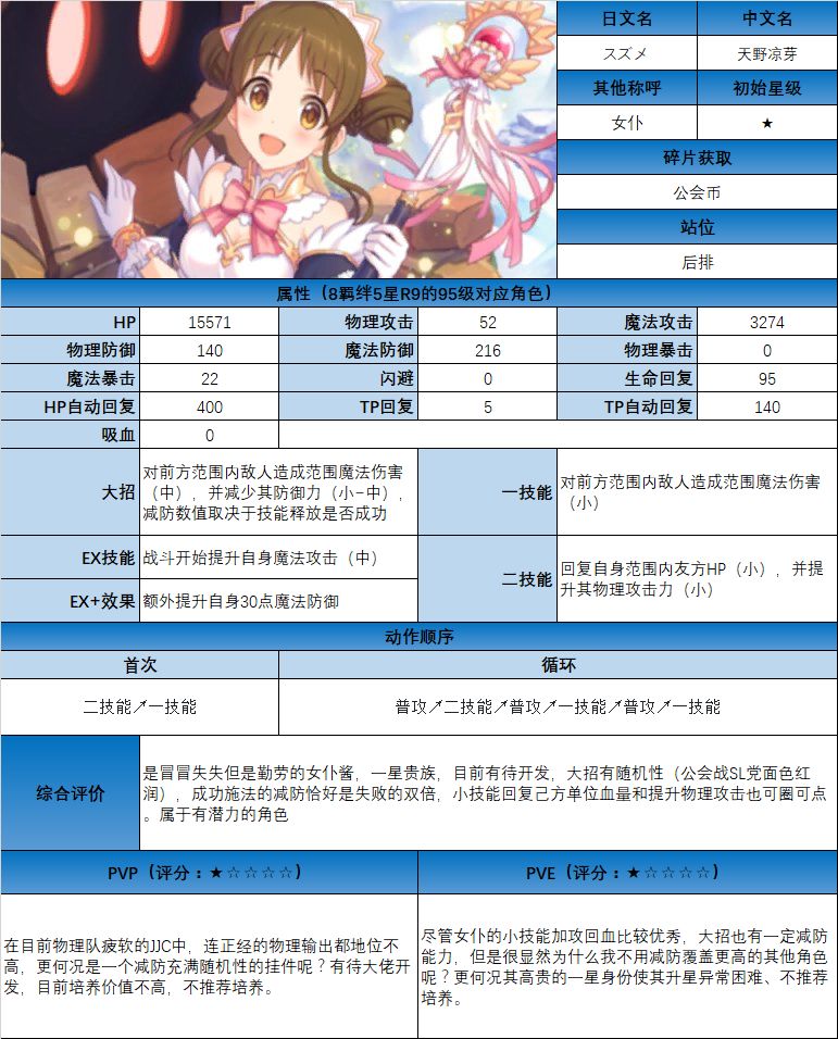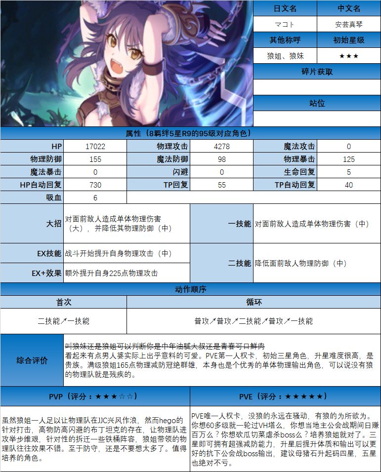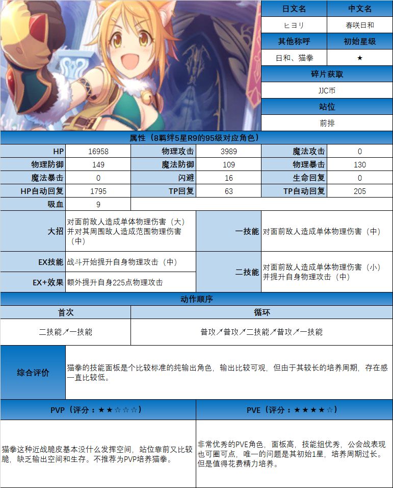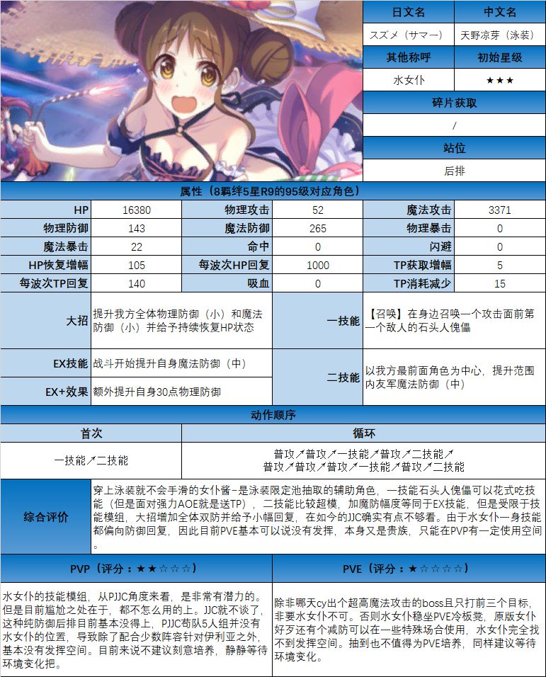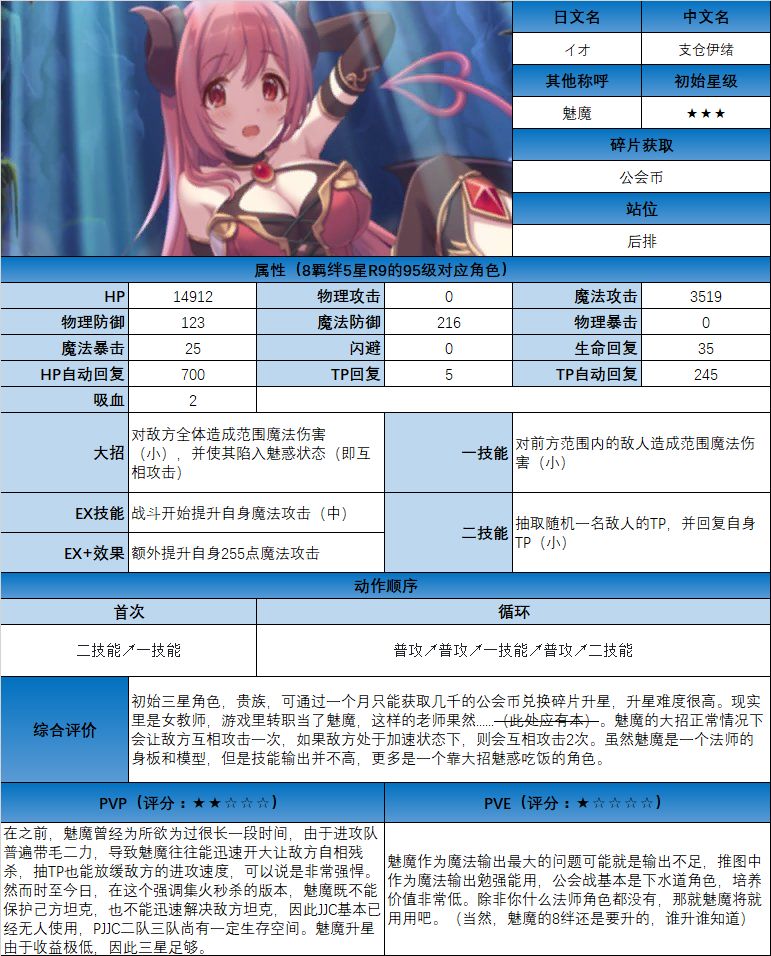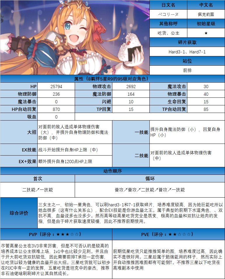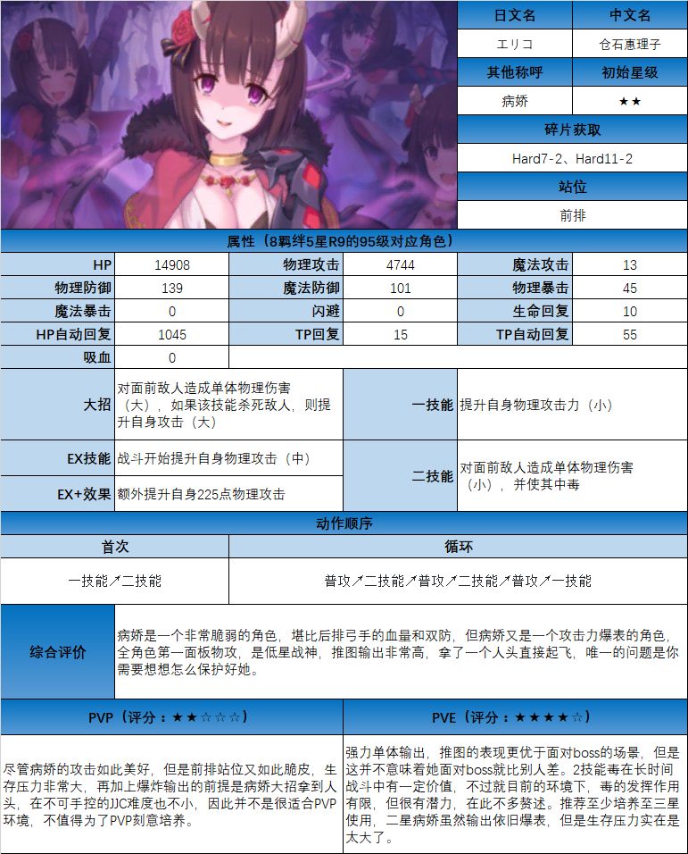 图鉴中综合评价主要结合技能和升星难度综合考虑;PVE主要考虑公会战场景,一定程度考虑爬塔和Hard图