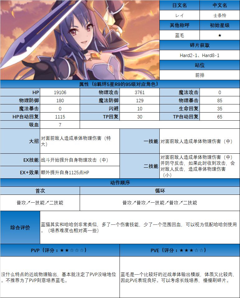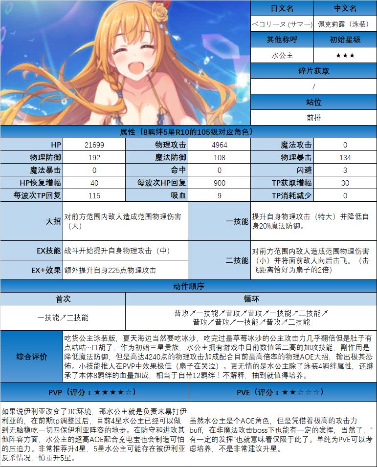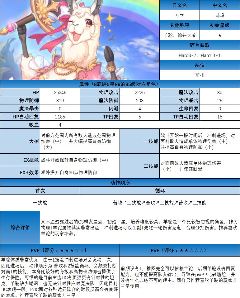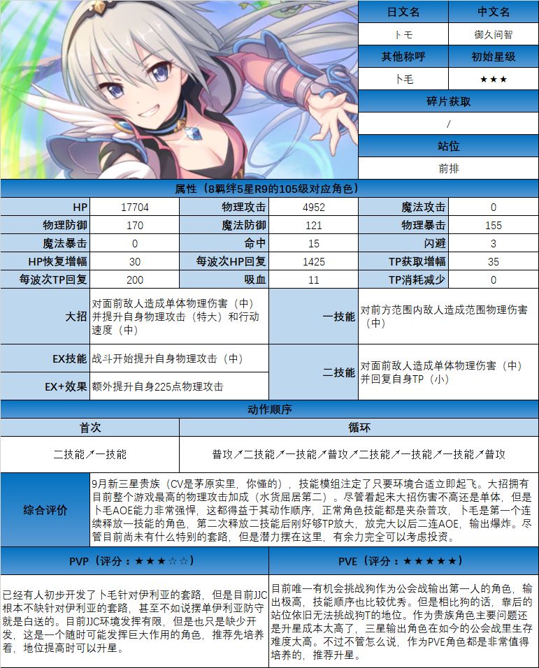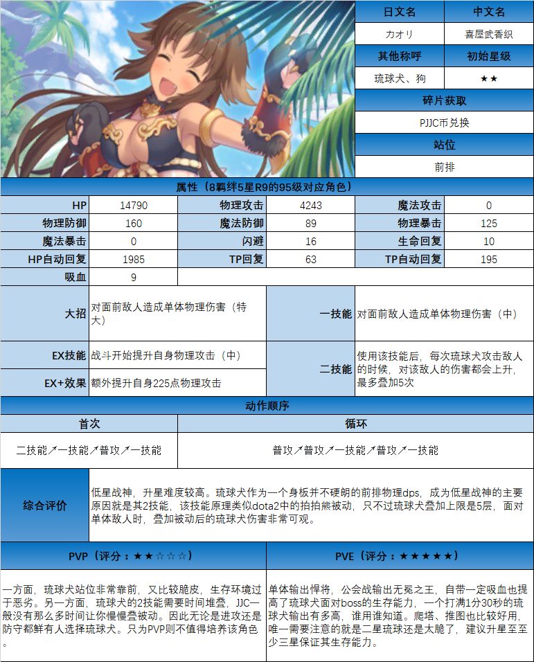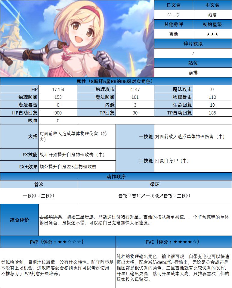图鉴中综合评价主要结合技能和升星难度综合考虑;PVE主要考虑公会战场景,一定程度考虑爬塔和Hard图