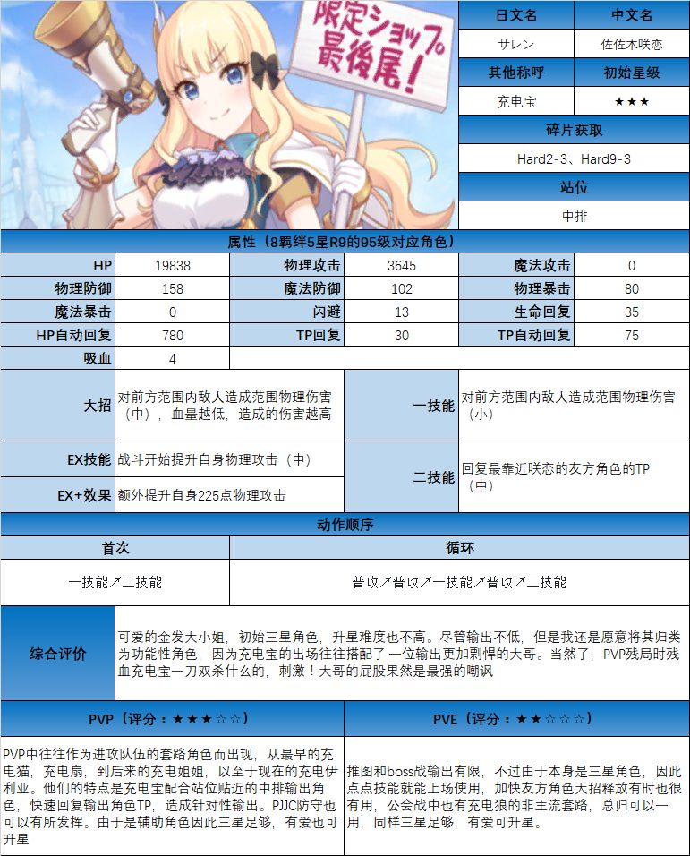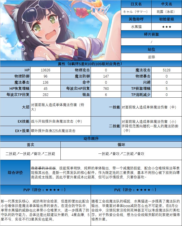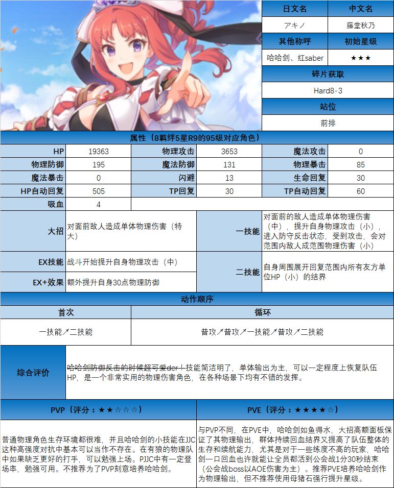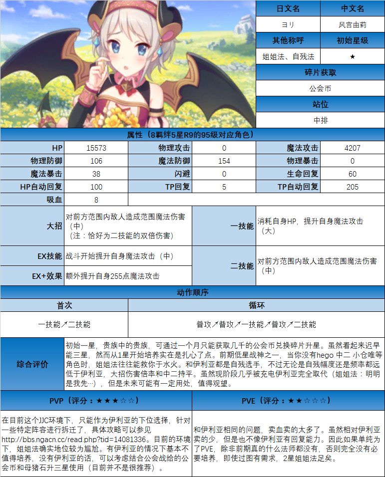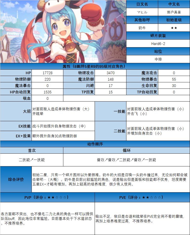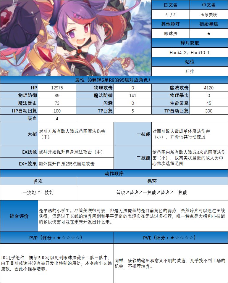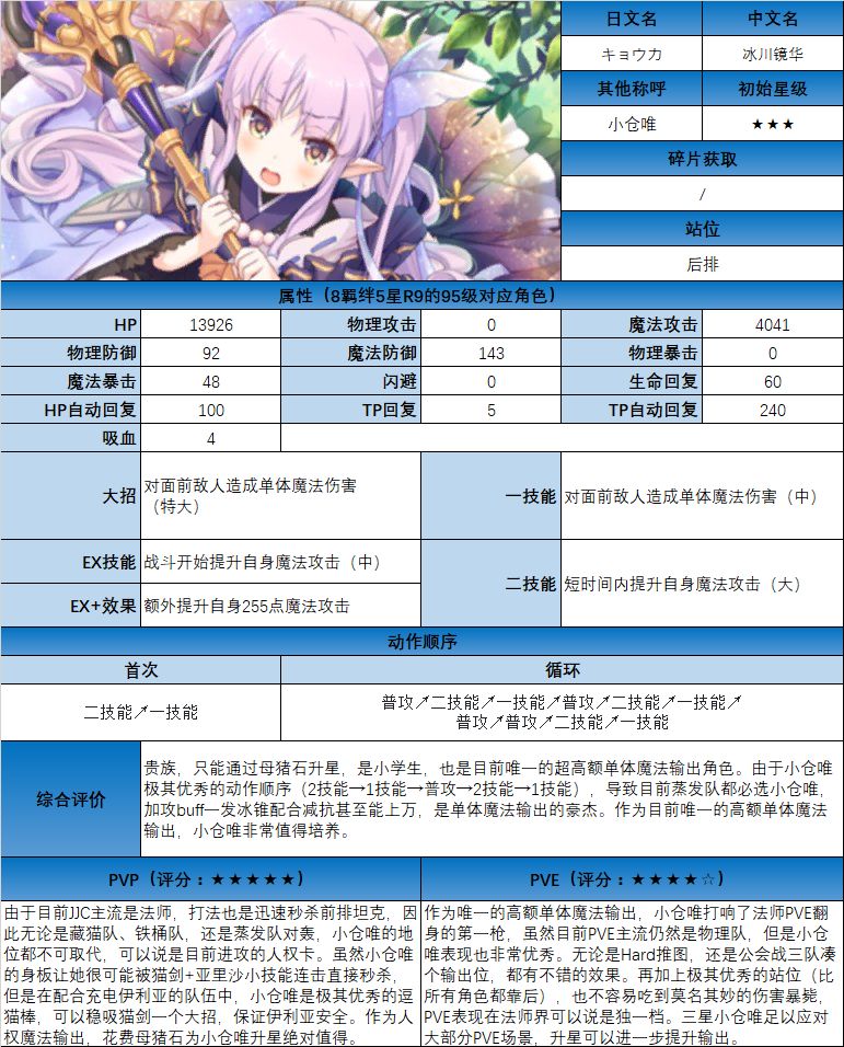 图鉴中综合评价主要结合技能和升星难度综合考虑;PVE主要考虑公会战场景,一定程度考虑爬塔和Hard图