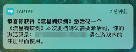 获得了测试资格的玩家都将收到来自TapTap的站内通知,通知中将送上登录用的激活码,所以请藏藏好!