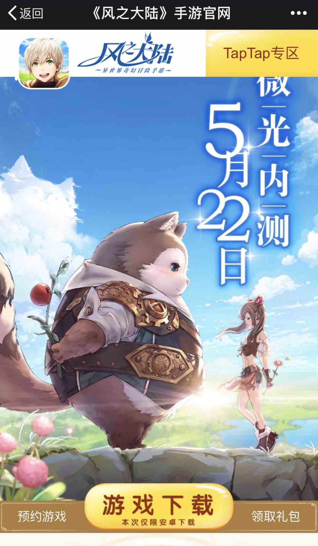 通过TapTap搜索风之大陆,任意区点击【官网】按钮即可进入下载页面,根据操作提示,按步骤下载即可。ღ( ´・ᴗ・` )比心