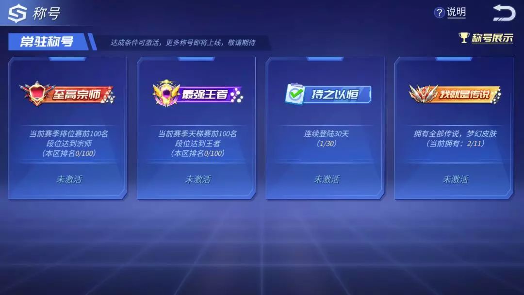 玩家佩戴称号可获得专属加载炫耀表现!获得战场开局炫耀表现!获得专属聊天炫耀表现!