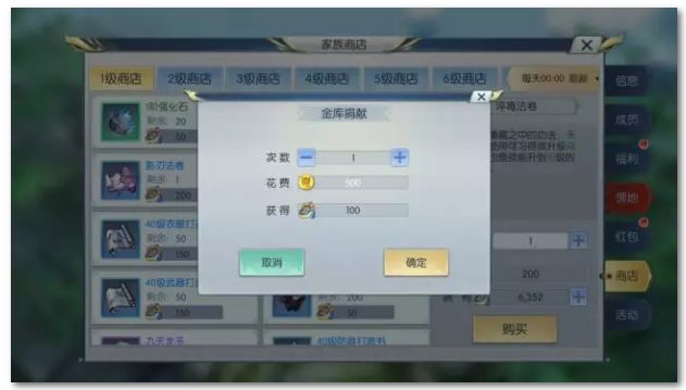 什么?有道友说商品总会买够的?真是太天真啦!别忘了金币还能捐献给家族金库哟~对于每天不花光金币不舒服的道友来说,金库捐献可是个好地方,他们总是每天捐款最大方的那群人!不过他们也收获了大量的家族贡献,也算是物有所值了!
