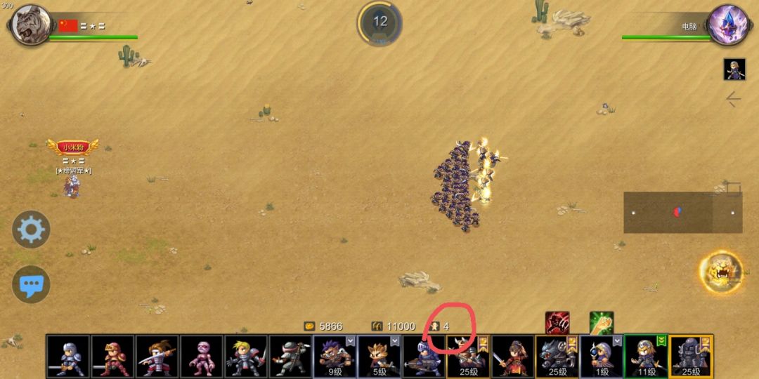 卡人口:四阶兵人口占8(人口是第三组数字),当你的人口少于8,点四阶兵,由于人口不够就暂停了出兵。这个招数后期可以用,想攒钱的时候卡几个人口,敌人来了一个一个放