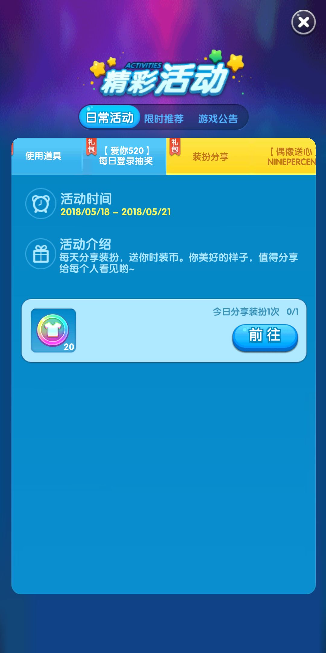 活动介绍:每天分享装扮,送你时装币。你美好的样子,值得分享给每个人看见哟~