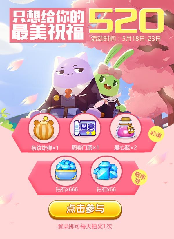 【活动】【520福利第二波】登陆抽奖赢道具,分享获得时装币哟!