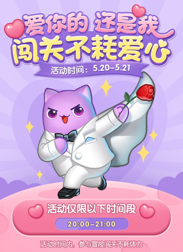 活动介绍:活动时间内,闯关不消耗爱心。随意的造作吧!放肆的消耗吧,爱你的还是我哟!