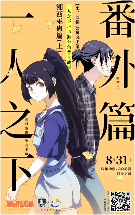8月31日,由《一人之下》原作者米二监制出品的《一人之下》手游特别番外湘西巫蛊篇(上)于腾讯动漫、QQ动漫同步更新上线。这是《一人之下》手游继特别番外——三十六贼之魏淑芬后,推出的又一部番外作品,番外下篇将于9月初接力推出,敬请期待!