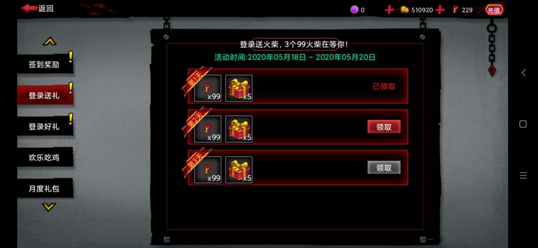 活动内容:活动期间,每天登录即送99火柴+5个玫瑰礼盒。记得12点上线领取!