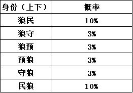 1 首先来看看双身份中自己是属于狼人阵营,且各种身份出现的概率
