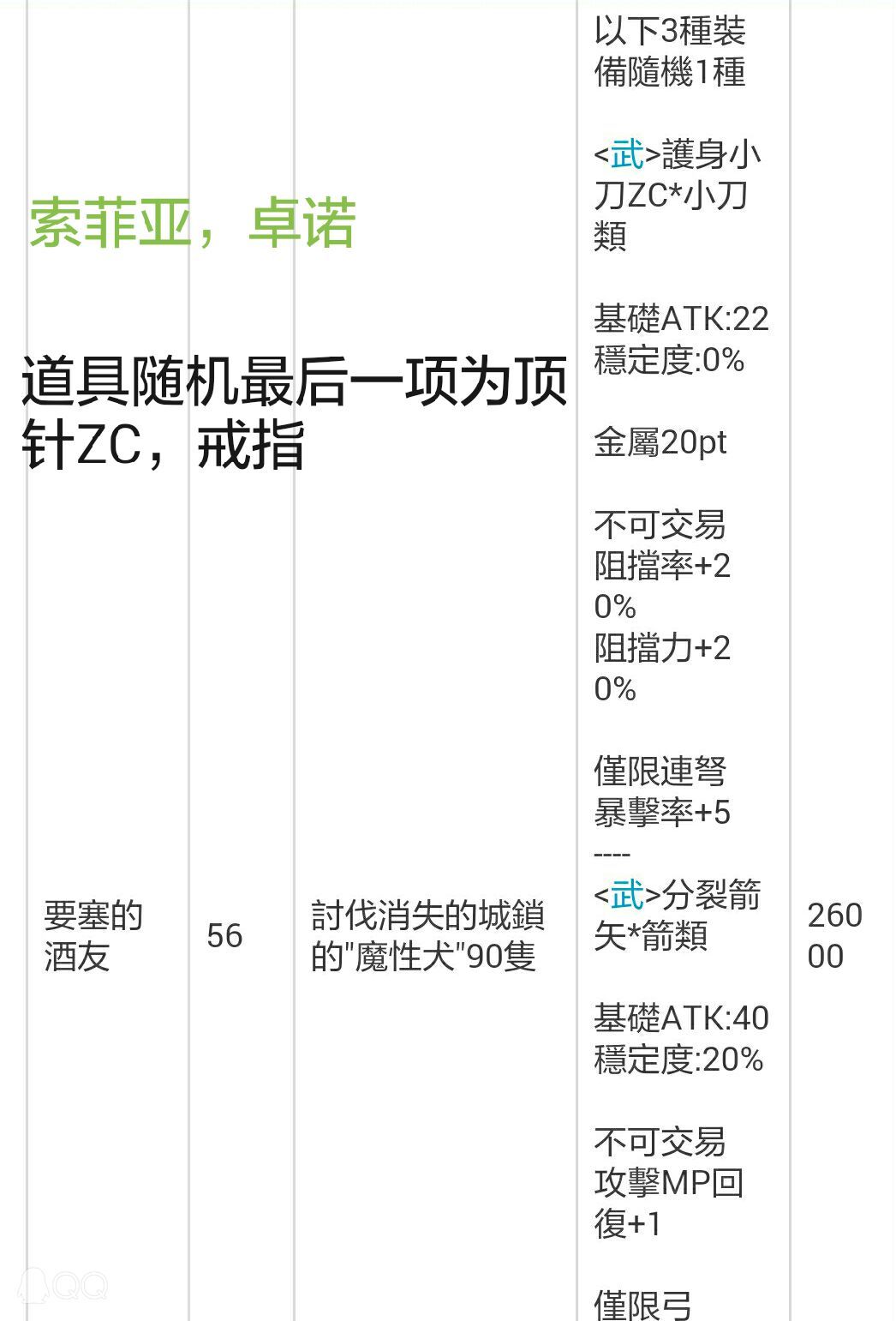 树果:涩树果18个?(好像是),索菲亚街道,索菲亚街道,卓諾,新下酒菜(好像是)(不要在意这么多细节啦没有截图)经验约1.8W