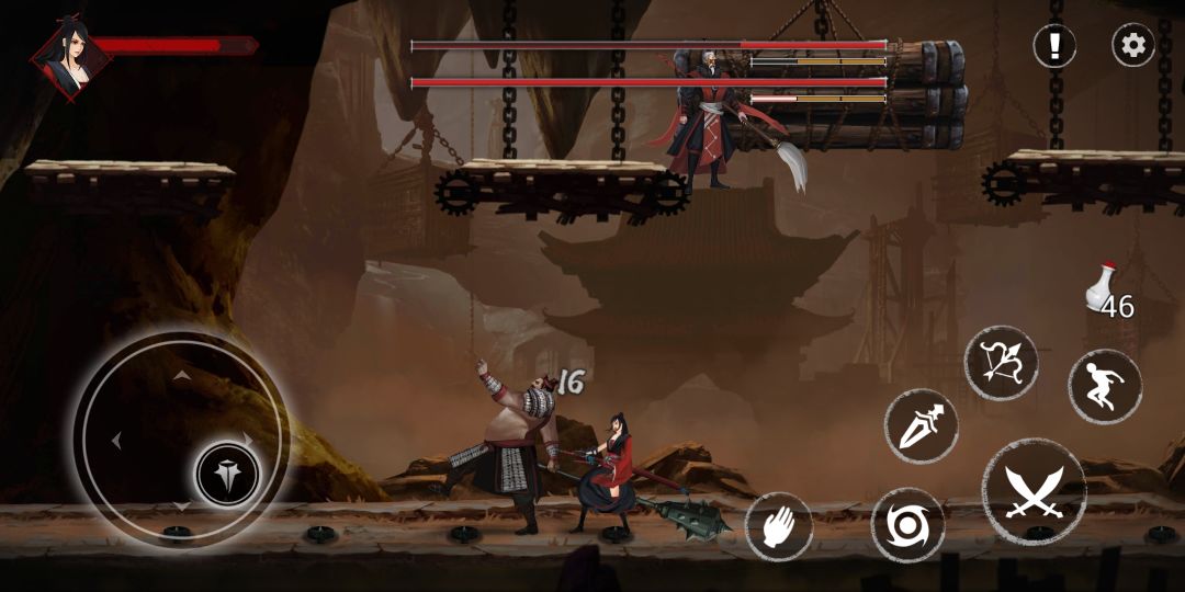 还有下面那个boss,其实他是真的不好的,要是靠闪、弓箭伤害不够,双刀容易挨打。但是有个bug,具体情况不好说,建议制作者去试一下,这里只说一下打法:靠近他在他用一个招式间歇的时候直接开大刀打,就可以触发bug。这是我找到打这个boss最快的方法,虽然会伤血,但是也问题不大,况且bug比较好触发,回去打个药又继续打。