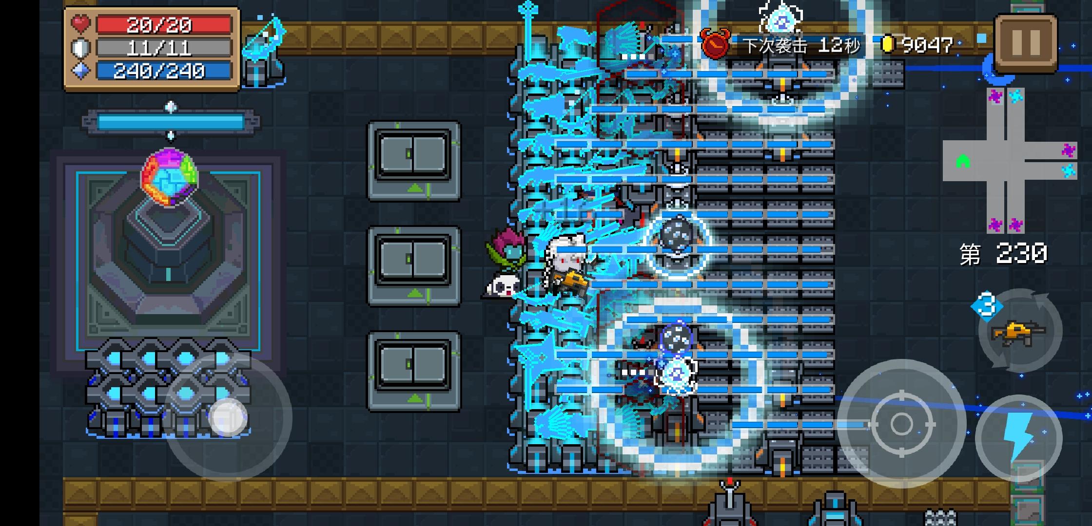 可以看到现在没有怪来袭击,上面还有计数条。右边可以看到群星之弓的攻击特效,但是我装全自动的武器还有一把中间的火焰步枪,并没有触发全自动。