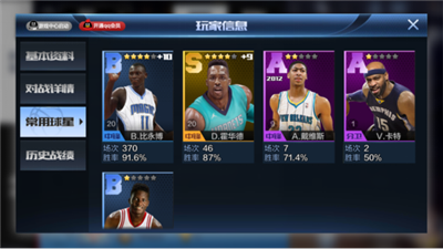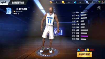 比永博:最后要介绍给大家的是B级球星比永博,至于为什么推荐他后面大家就会一目了然。中锋在场上的作用还是比较重要的,开局抢球只要己方有中锋那么肯定就是中锋的活了,先手抢到球传给库里这种三分球员,开局可能就会为己方带来开门红。而中锋的灌篮更是游戏中很难防守的存在,同样的中锋对抗,如果你在速度上有优势,就可以快速晃过对手来到内线,这时候另外四名球员肯定还在对抗中,前方无人防守点击投篮便可完成灌篮稳稳得分,这也是完成剧情得分任务的一种“赖皮”战术。