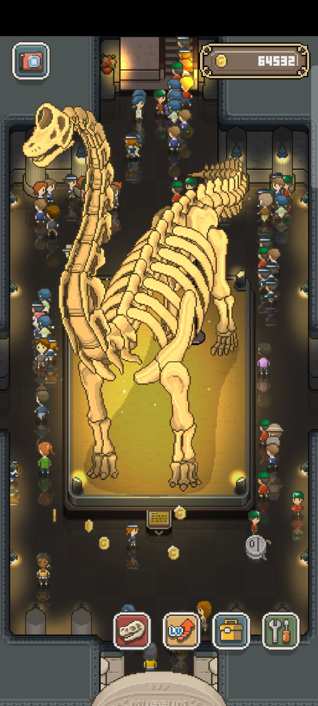 顺利二次毕业,又要等更新了,希望能在多加些玩法,而且我发现摆放恐龙化石的时候方向有点乱,如果能自己调节就好了,不然有的恐龙总会被别人挡住,希望能改进吧!腕龙一定要放在一口正中间,让顾客一进门就有震撼的感觉,这个腕龙这个大小我太🉑了!!!