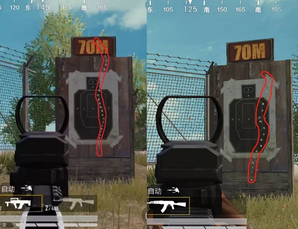 满配M416与AUG弹道对比