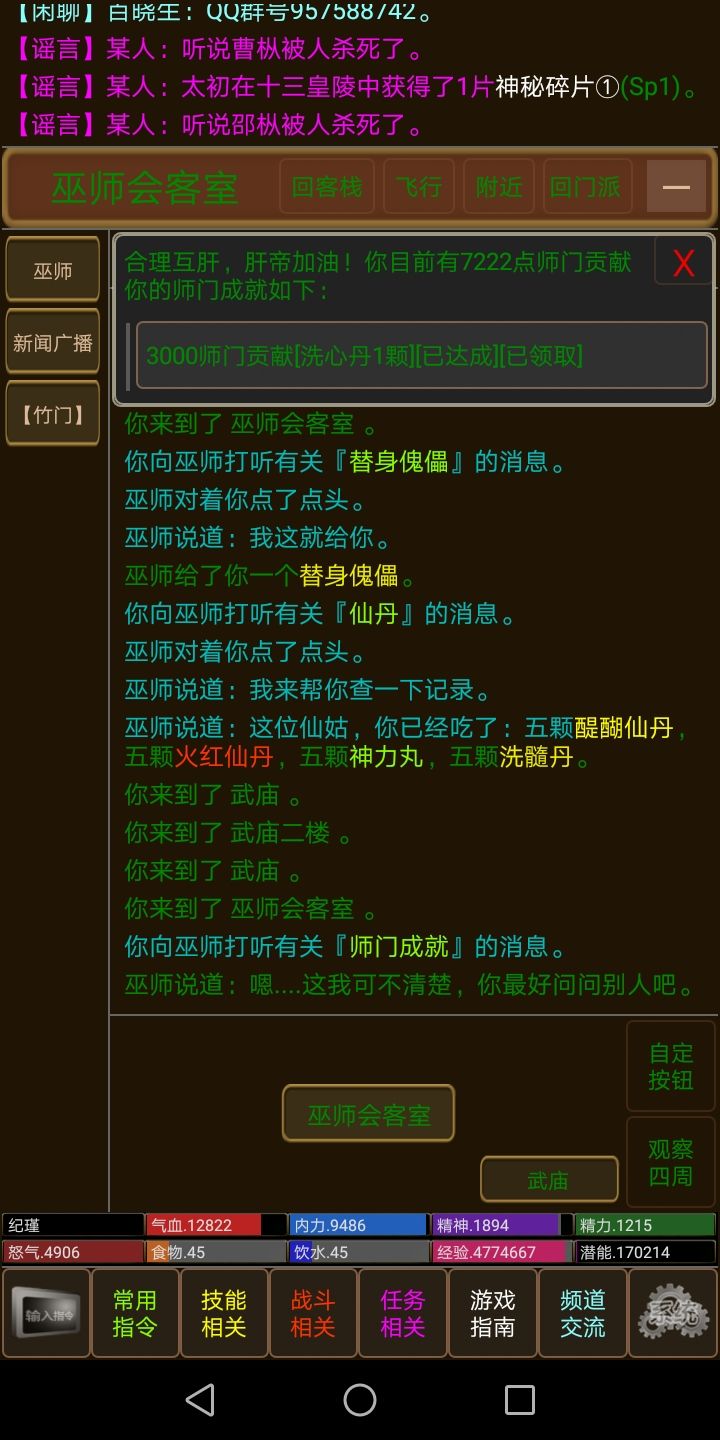 学完天狼子的武功就可以拜师我们最爱的丁老仙,丁春秋同志啦。不同于前面两个师傅,拜丁春秋是有条件的,需要邪气一千,经验10万,基本毒计100,以及拍丁老仙的马屁。如果是前面留学桃花有大量正气而拜不了师的话,可以多做师门任务减少正气,增加邪气,还有一个比较骇人的方法就是吃人,emmm…也就是把死掉的人(注意,是游戏里的npc,不是现实生活的人!!!)直接吃掉或者割下它各部分的身体组织吃掉,因为该方法过于恶心以及极端,我是极度不推荐的,建议大家跟我一样,老老实实地做师门任务得邪气,虽然咱们是邪①教,但是也不能丧心病狂到这种程度呀。有正气有一个好处就是可以中每周故事的凝血神爪,只需后天身法45,正气大于0就可以中,一周一次,看脸,我非洲人,脸黑,中不了,现在邪气又多,注定无缘。
