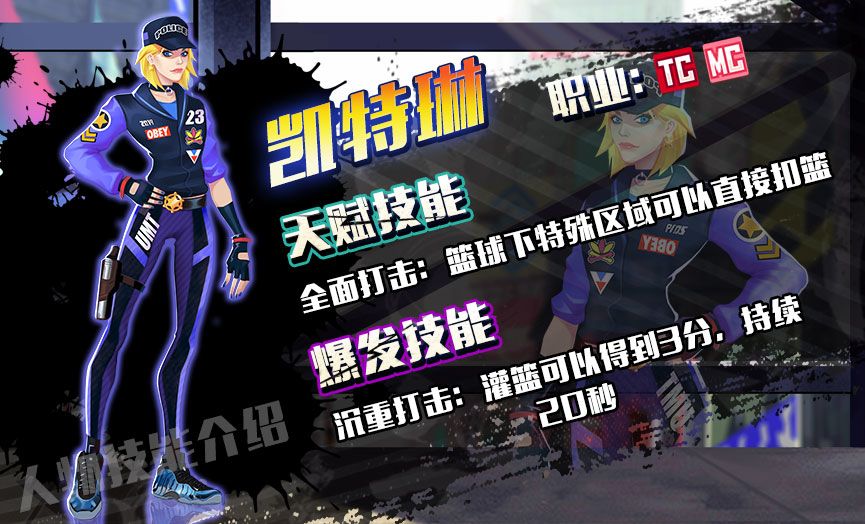 说到三分,我不得不提下咱们《自由街球》游戏中的球员:凯特琳。凯特琳作为一个即可以打PF又可以打MC的球员,也有她的独特地方。首先MC这个职业本来就是一个可以投三分的中锋,加上她的爆发技能沉重打击:灌篮可以得到3分,持续20秒。这样的球员,在球场上的作用显而易见是非常的巨大。