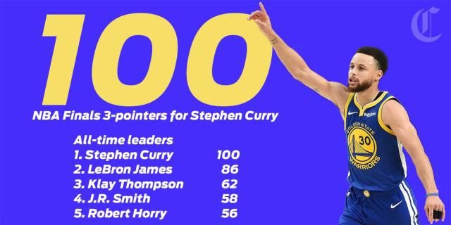 在这场比赛中,库里也获得了总决赛的第100个3分球,他也是NBA历史上唯一一位能在总决赛赛场上投中三分数超过100个的球员。