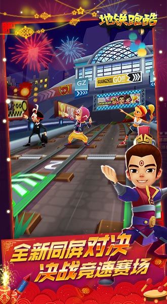 迎接春节的到来,《地铁跑酷》开放真实的同屏竞技对战、借春节版本上线之际,给各位玩家带来惊喜,让玩家在浓郁春节氛围下享受更有竞技性的跑酷体验。