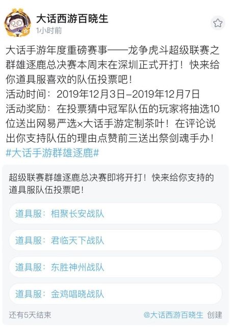 赛事期间官方平台也将同步上线一系列与赛事相关的福利活动,欢迎大家前去参与!玩家在网易大神关注群雄逐鹿认证参赛选手,将会在助威选手的玩家里抽取幸运玩家送出游戏福利,另外参与网易大神大话西游百晓生的竞猜投票活动,也将有机会抽取祭剑魂手办、定制