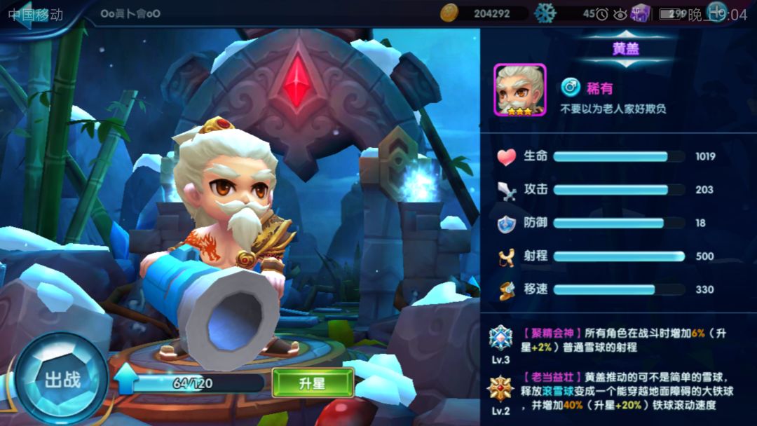 黄盖率先介绍,很明显是他容易获得。升到10级后点击即可获得。黄盖的技能是增加滚雪球的速度,近身贴脸的效果还不错,一次性伤害,伤害为范围值,并不是固定伤害,测试范围为250-600,技能讲究的是爆发,没有控制。在战斗中升级“滚雪球”技能,只变大雪球的体型,不增加伤害。但是滚雪球可以抵挡敌人的普攻。