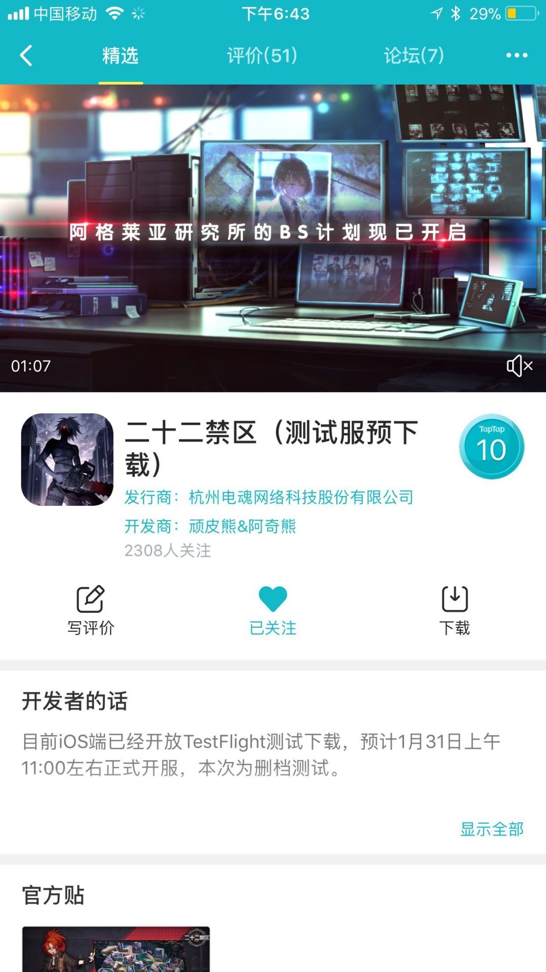 这就是完整的操作流程了,在这里娜佳通知各位小伙伴一件需要注意的事情,点击下载后获取到了应用千万不要点击额外的选项,例如Stop Testing!这是很作的行为哦!这样这个账号就体验不到二十二禁区了呀!