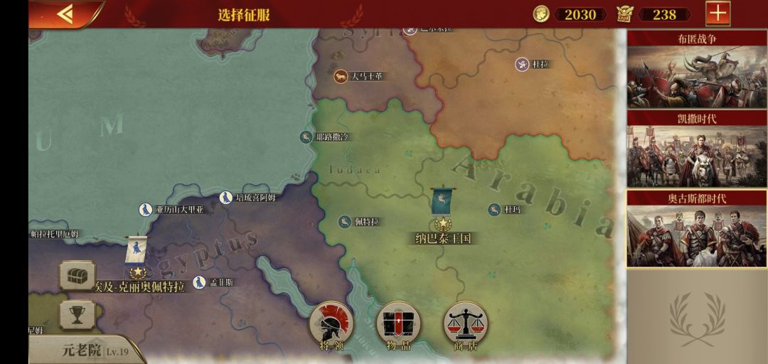 后续:整个下来就能差不多在十一局或十局的时候灭亡埃及,这样纳巴泰最大的敌人就没了,灭亡埃及后要不断打钱给本都(一般300~200即可,还要拉拢中立国伊利里亚,但是要是摇摆国要钱肯定要给,钱不够用的时候优先打钱本都,不去拉伊利里亚,小亚细亚这片的战线比较紧张所以打钱本都优先度仅次于给摇摆国钱)然后顺便招兵灭亡纳萨摩耶斯(棕榈国),步将也要用上,注意不要让步将暴毙,安东尼的昔兰尼先不用管他,先灭了棕榈国再说,各个偷下来的城会被打,招兵是守得住所以尽管往前推就行,大莱普提斯肯定会被棕榈国打掉,但是我们不用慌,只要推到费拉姆即可,大莱普提斯会被雷必达打下来,然后北上打安东尼支援东欧战线的希腊地区,如果顺利的话屋大维已经快结束东欧地区的战争了,你插一脚就是如虎添翼,懂我意思吧,另外顺利的话屋大维北方的高卢残部会被西甘布尔给灭光(没错这个开局只有一座城的小国就是这么猛,之前外交诺里库姆就是为了阻击并灭亡卡狄防止它灭了西甘布尔)然后只剩下伊比利亚的敌人了,三星之耻雷必达必定会被坎塔布里吊起来打,伊比利亚地区全丢(防止有人不懂伊比利亚是哪里,我说明一下就是开局游戏里托莱多所在的地区,玩过征服一的就知道图尔德泰尼,它所在的地区就是伊比利亚)但是要是一切顺利的话海盗会参战,反攻伊比利亚地区,然后屋大维,西甘布尔,雷必达配合就可以灭了坎塔布里,然后游戏结束:大概在四十回合左右,反正我的就是四十回合结束的。
