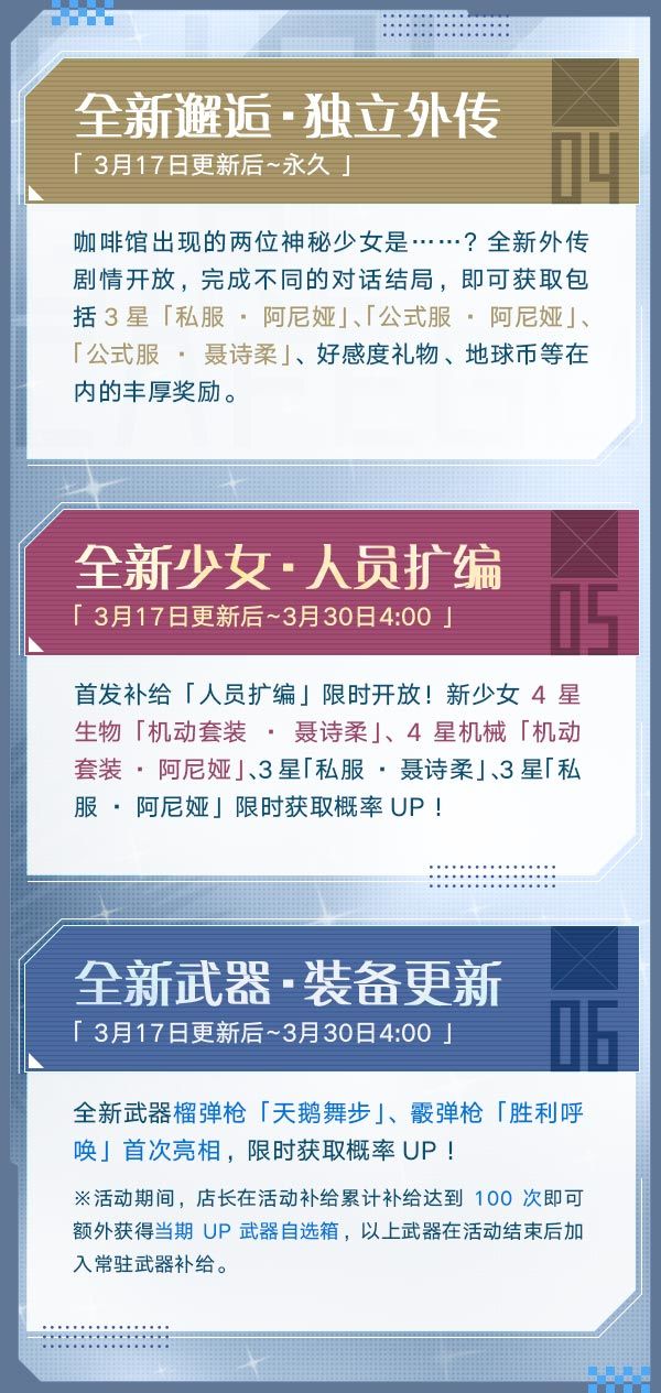 咖啡馆内出现了新成员的身影?神秘出现的两位少女其身份究竟是……3月大型版本「谜题少女」即将为您揭晓答案,新福利、新少女、新玩法缤纷亮相!以下为小七为各位店长带来的最新情报哦 (>ω・* )ノ