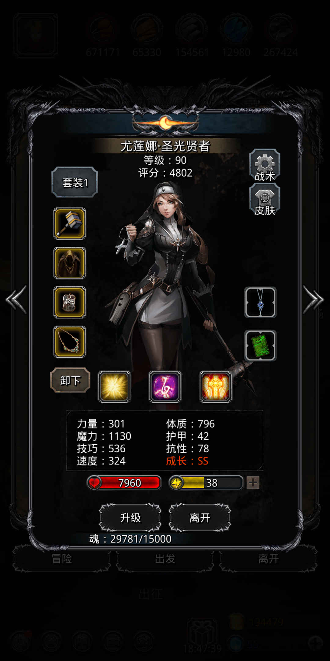 火法神罚,堆抗性+命中,顺便+点魔力。这里是重点,之前一直以为堆命中魔力,死了几十次后发现短板出在火法这里,每次都是她先崩(5星60的时候500魔的火法,血薄的要死)。所以后面直接换了一个双守护龙虾上去把抗性怼到了100。