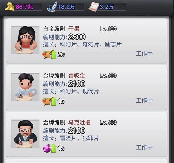 对于会所十五层的玩家,在攒满5万编剧证时(没看错,5万编剧证确实是一个非常浩大的工程),允许玩家朋友额外购买一个专属白金编剧“于果”,除了超高的能力值带领玩家朋友早日抵达8400的改编上限外,更能将首映/持续的加成值升高至40%,真的是一个bug的存在。