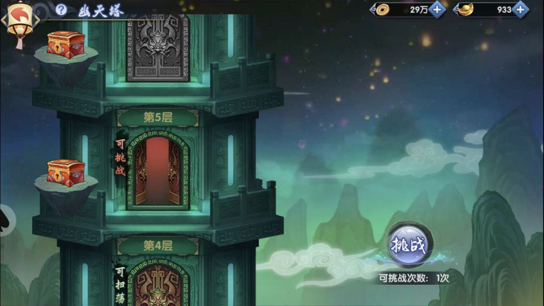 幽天塔目前开放30层,每天只能挑战五次,层数越高,奖励就越丰厚,当然怪物的实力也就越强劲。
