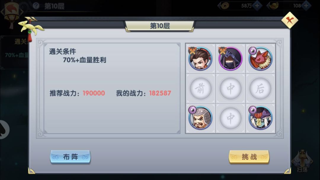 虽然通关的条件如此苛刻,但是大家千万不要被系统的推荐战力所吓倒,只要阵容搭配合理,自己制定战斗策略,以弱胜强也是经常发生的。