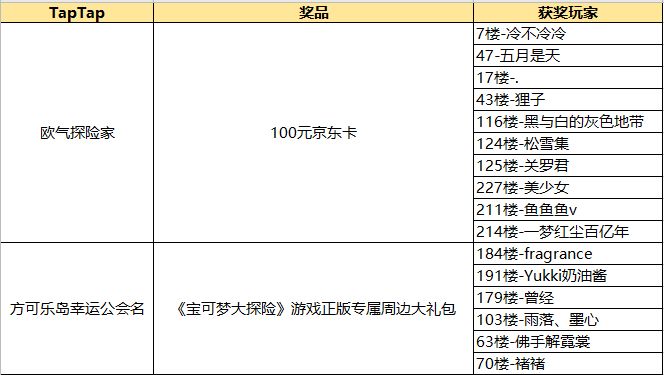 恭喜以上获奖玩家!请各位幸运的探险家添加工作人员QQ:917520557 (添加时请备注昵称,例:TapTap-GM图图)领取奖励!