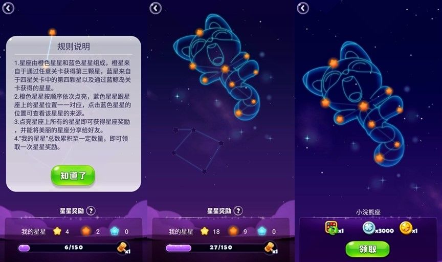 领取奖励后就会对应星座的说明,奖励还是不错的,不过有些难道很多,因为要满星才有,或者要通关蓝鲸关卡。