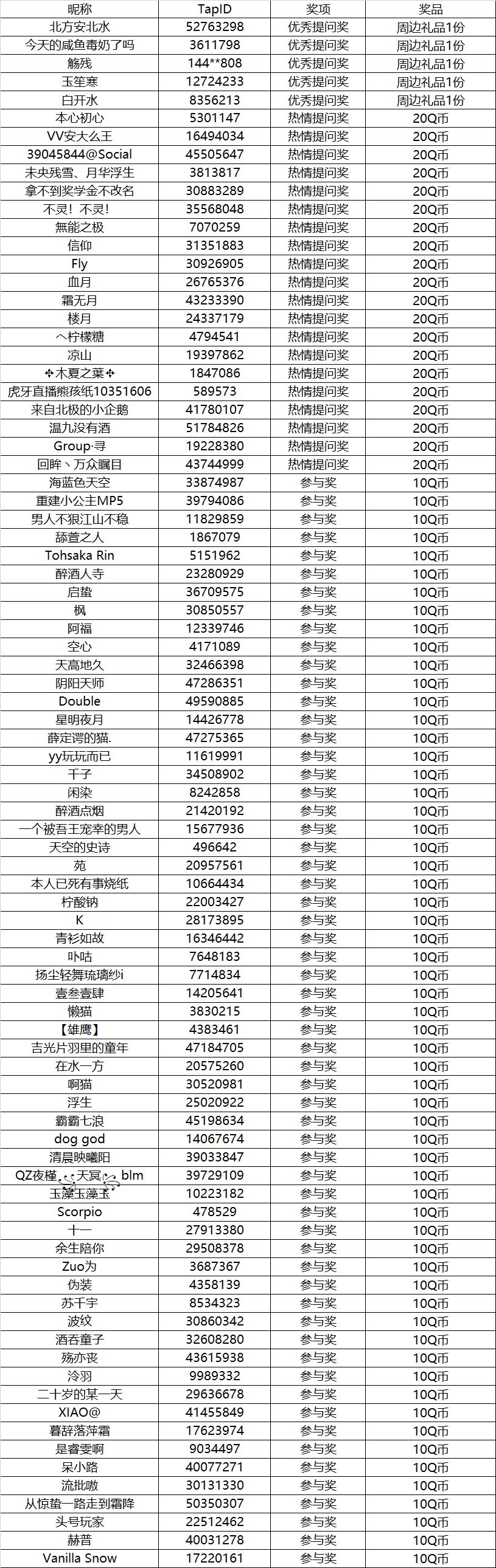 请以下获奖的红线仙,在邮箱3513949500@qq.com回复你的QQ号和TAP个人主页截图