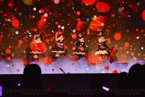 第二个组合是由ナデシコ(CV:本泉莉奈)、ツバキ(CV:铃木亚理沙)、カエデ(CV:大野柚布子)三姐妹组成的组合この花は乙女。她们献唱了和风摇滚歌曲《命短し、繚乱乙女》,热烈的舞蹈立刻将现场的气氛推向高潮。在演出中,竹林和樱花树这类的风景和毛笔字体的歌词接连呈现着和风的世界。光效随着扇子而散开的演出效果也十分令人享受。