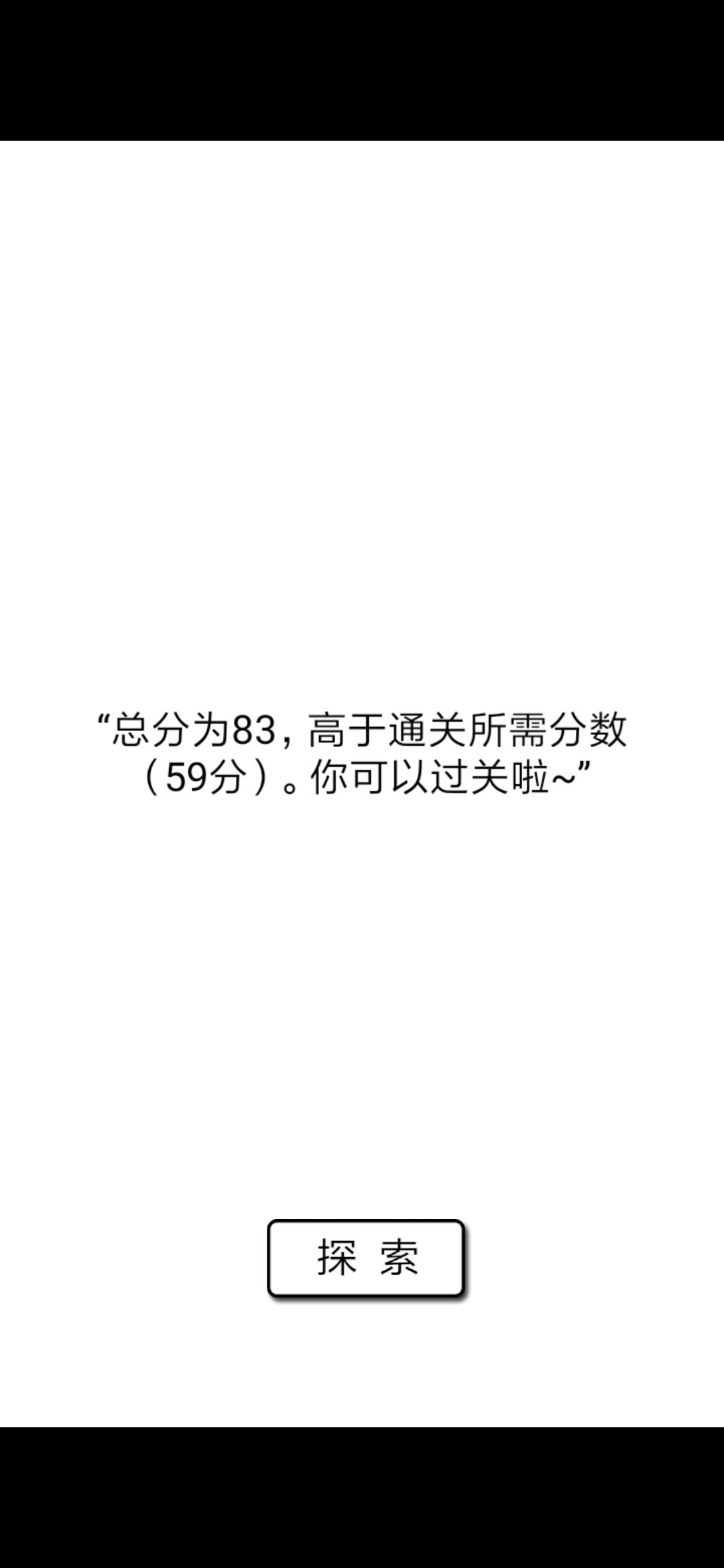 没想到啊,傻人有傻福。第一次通关,觉得自己的属性太低了,结果末尾属性越低分数越高啊呵呵红红火火恍恍惚惚哈哈哈哈哈哈哈哈哈哈哈!!!