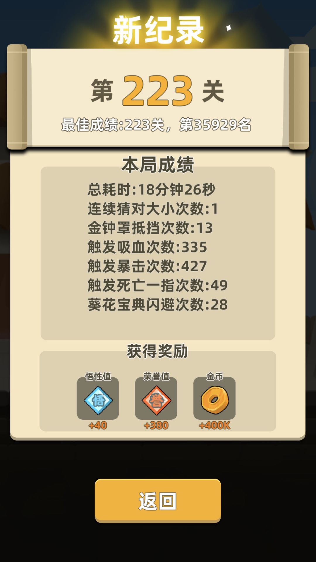 因为武道会的门槛低。不需要基础属性,甚至你的武器没有吸血特性也没有关系。有点小技巧就可以打到200以上,拿到最高的奖励(悟性,荣誉值,金币都是必需品)。此外费点时间打到220之后,像我这样的咸鱼就可以每次进入武道会都直接拿到200的奖励了(每次进入的楼层等于最高层数-20)