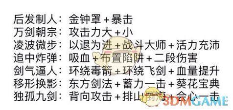 1.1必选:葵花宝典,金钟罩,复活,死亡一指,二次攻击,吸血,背向攻击,排山倒海,隔山打牛(都是选一次就ok)