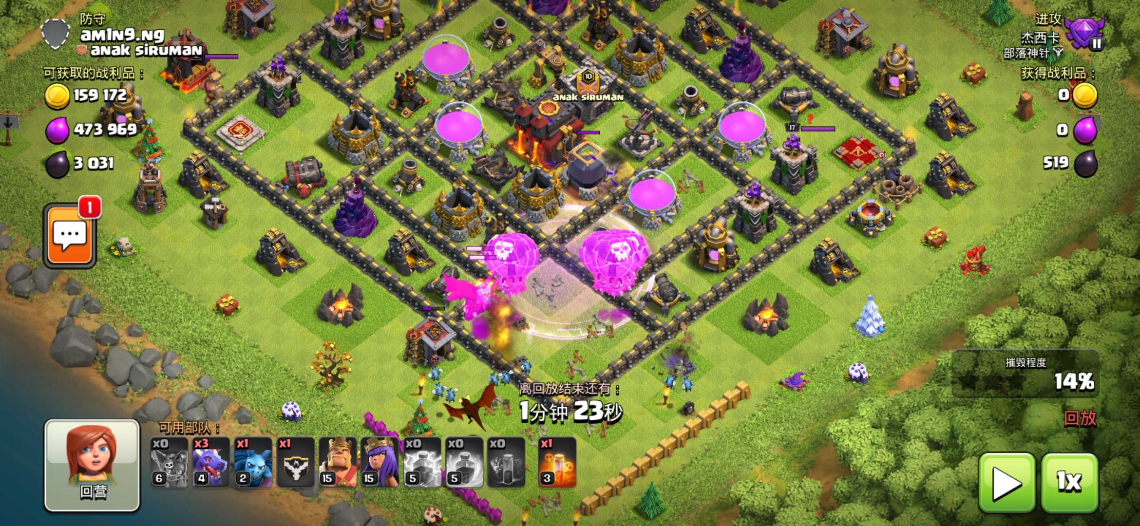 增援最好电龙或者气球。法术除了地震什么都行。